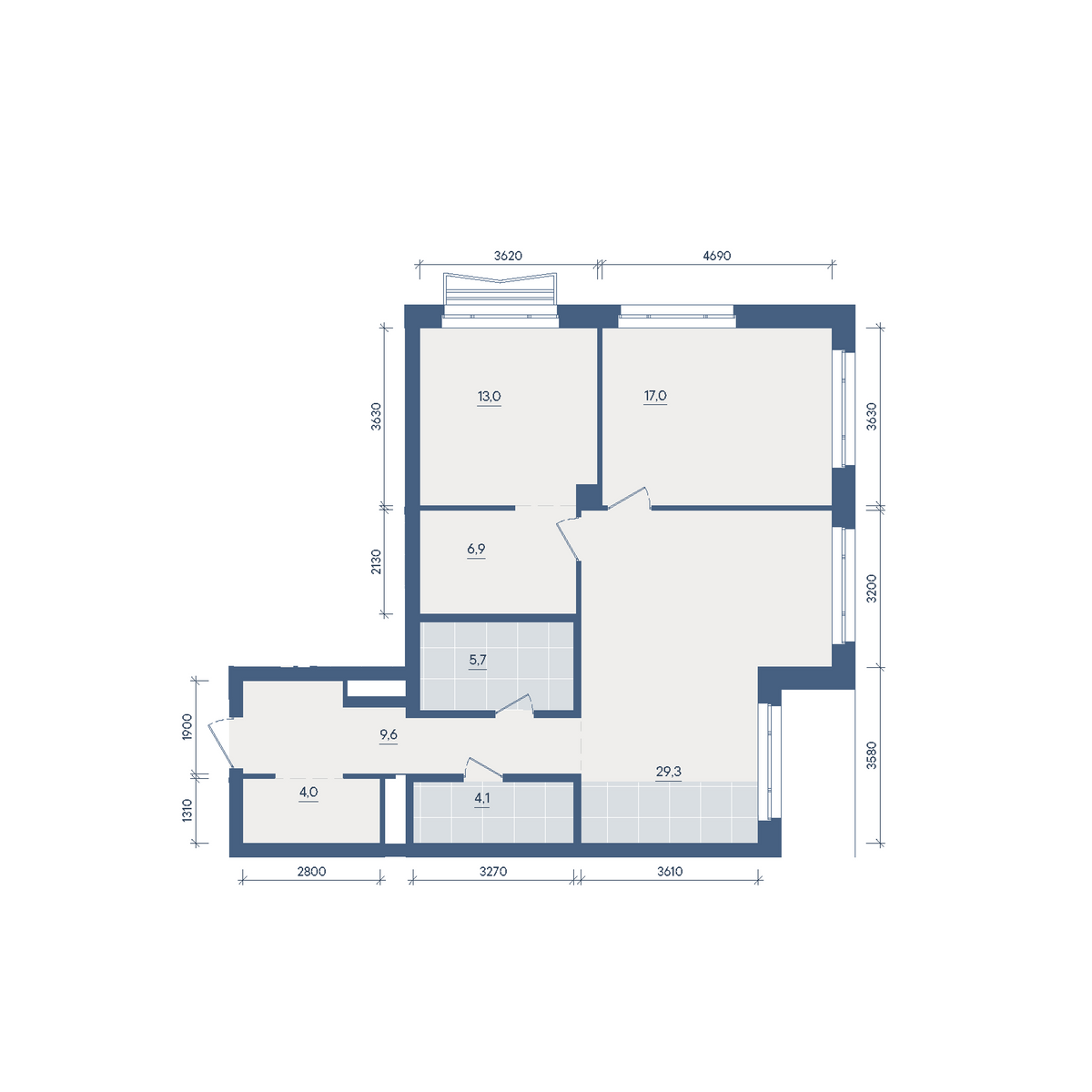 2-комнатная  89.6 м2