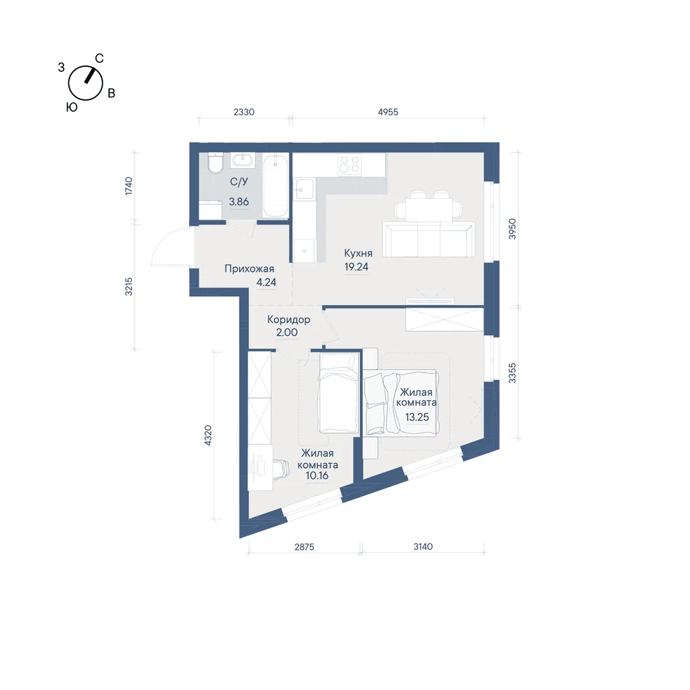 2-комнатная  58.31 м2