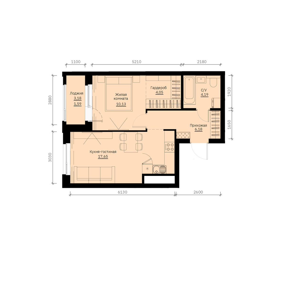 43.79 м2