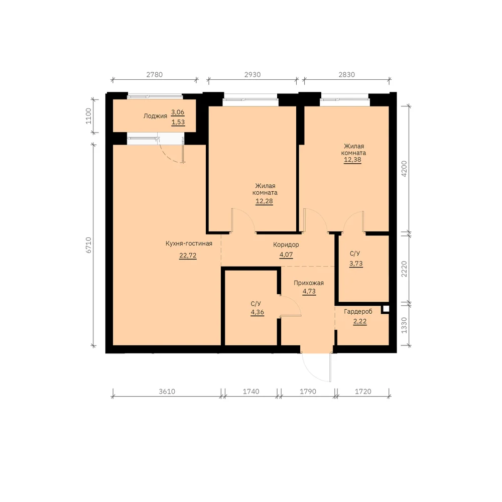 В квартирах будет выполнена базовая отделка — это означает, что все грязные и трудоемкие работы уже проведены.