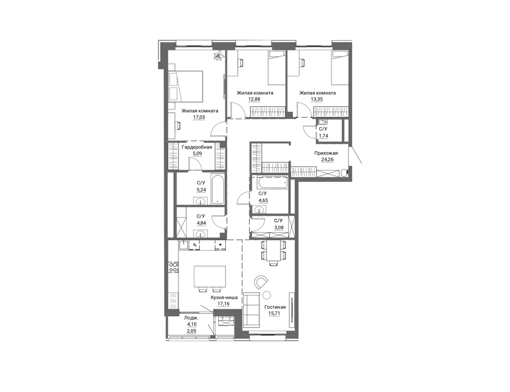 - № 126Александровский Сад4 очередь, Секция 3, Этаж 16