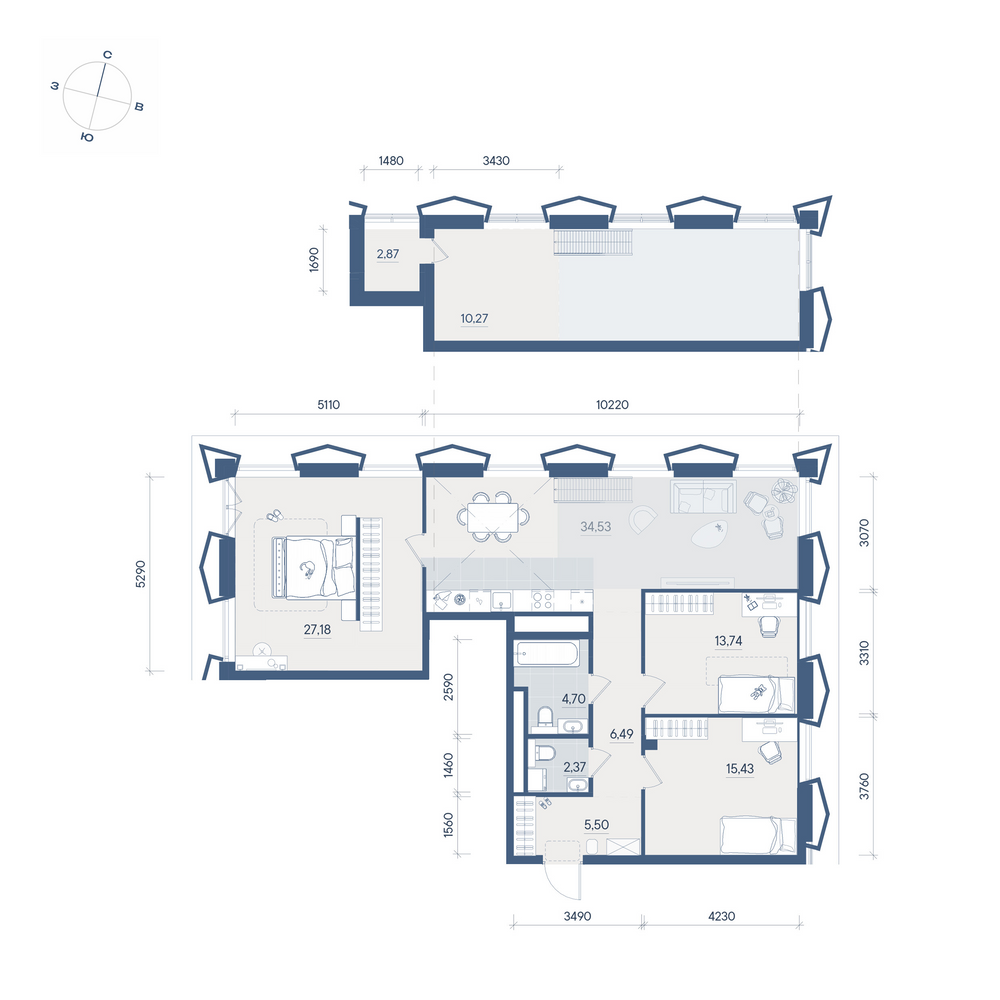 - № 90Александровский Сад4 очередь, Секция 3, Этаж 8