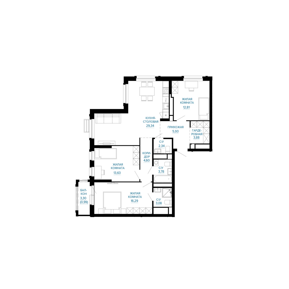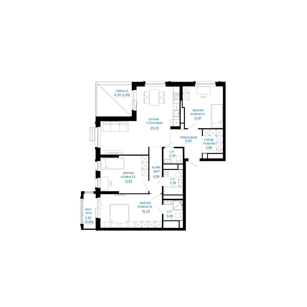 3-комнатная