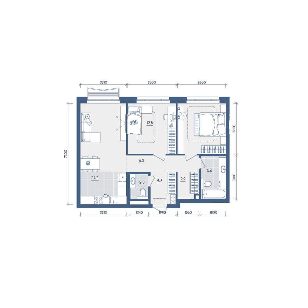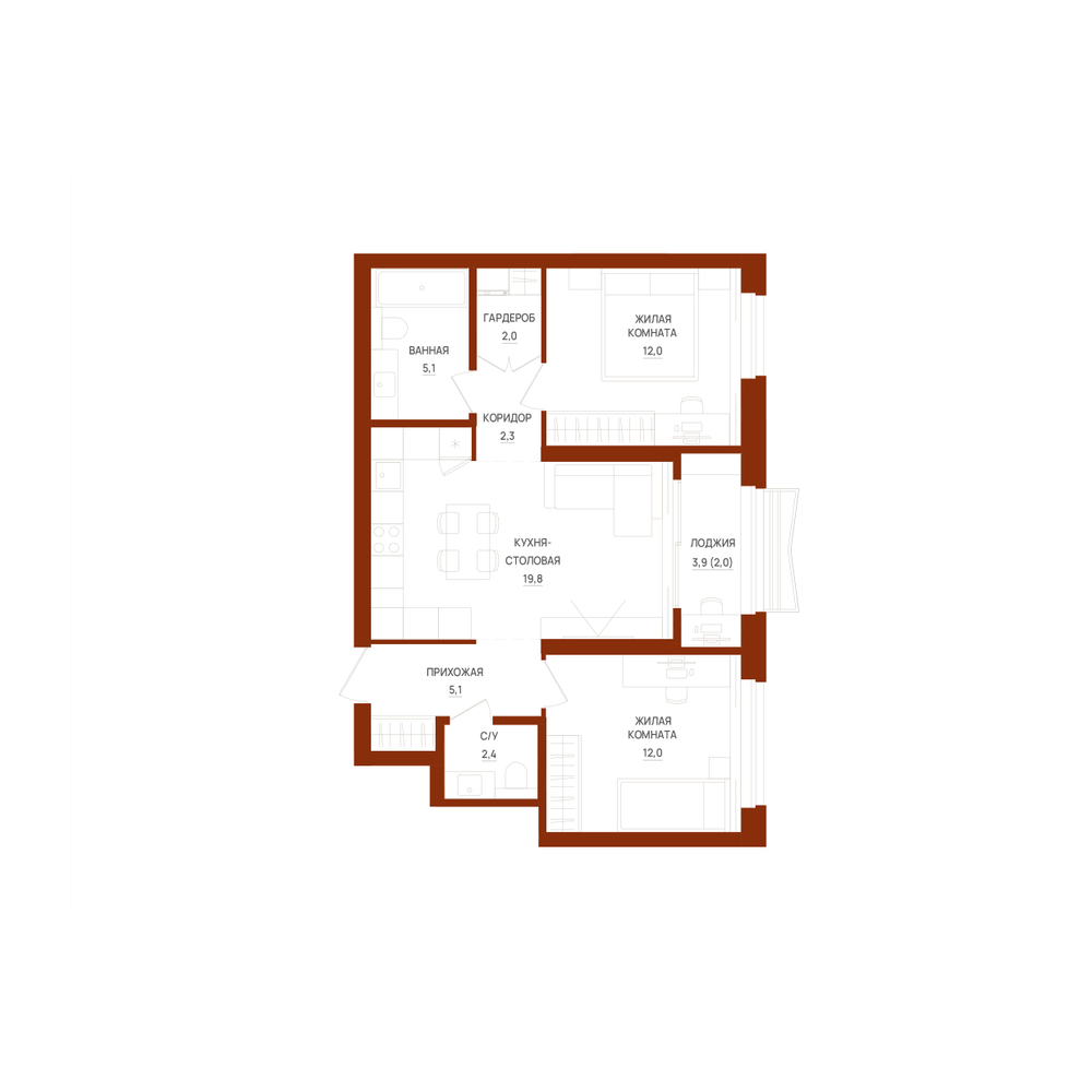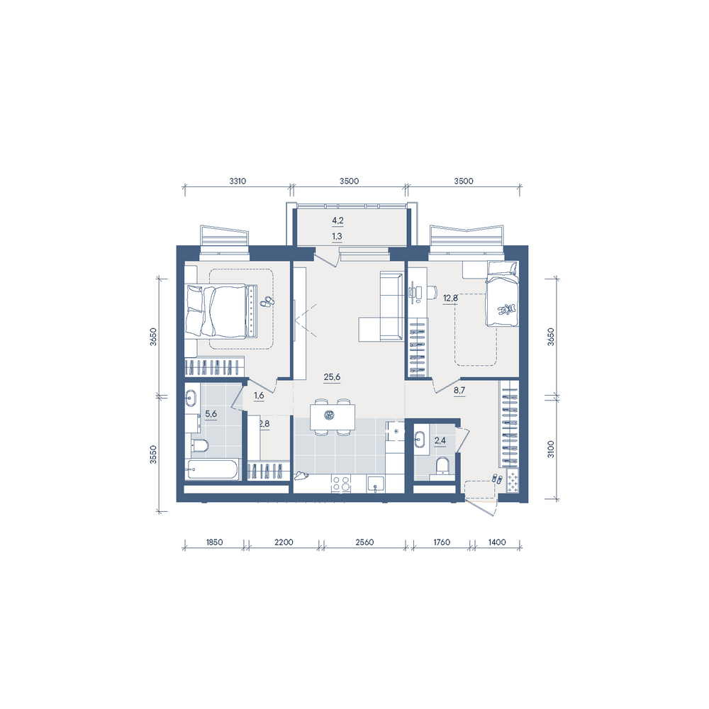- № 206ФормаФорма Секция 2, Секция 1, Этаж 2