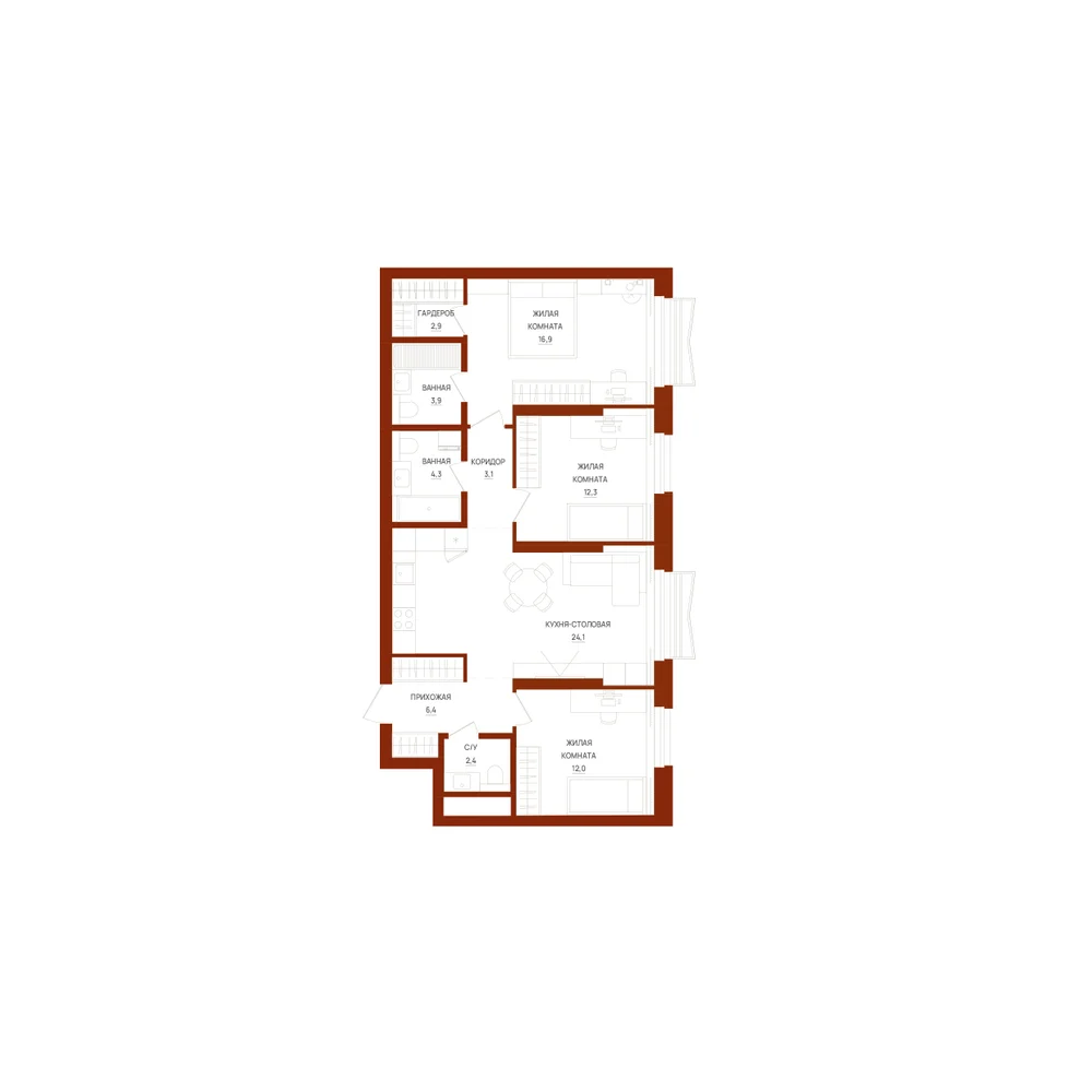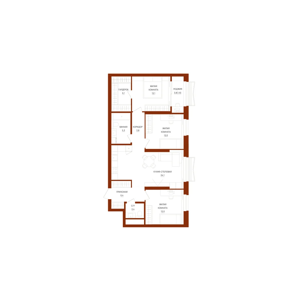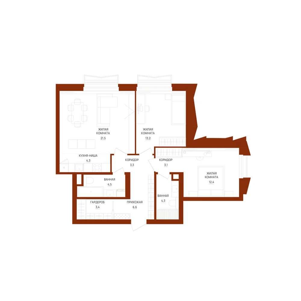 3-комнатная