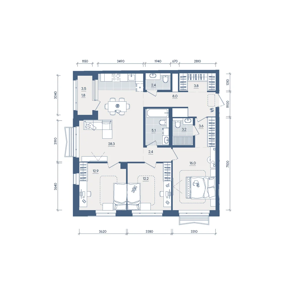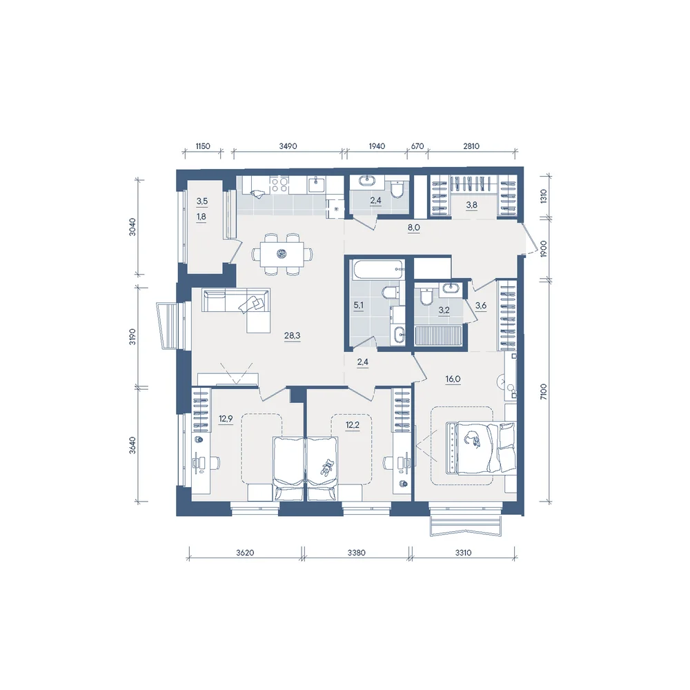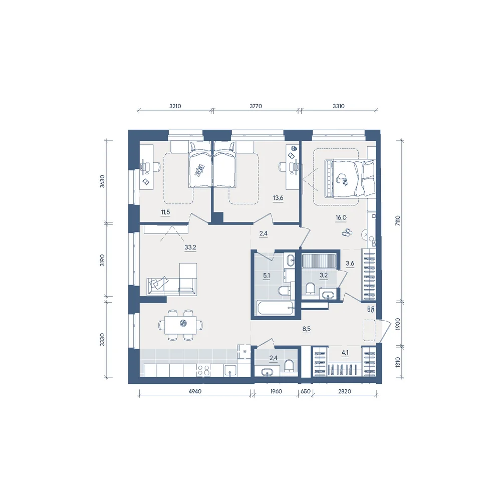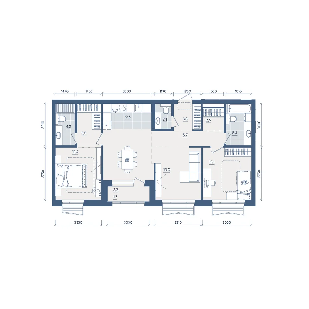 3-комнатная