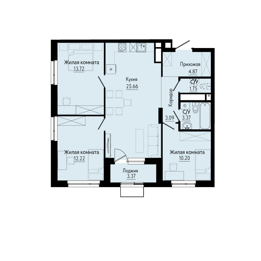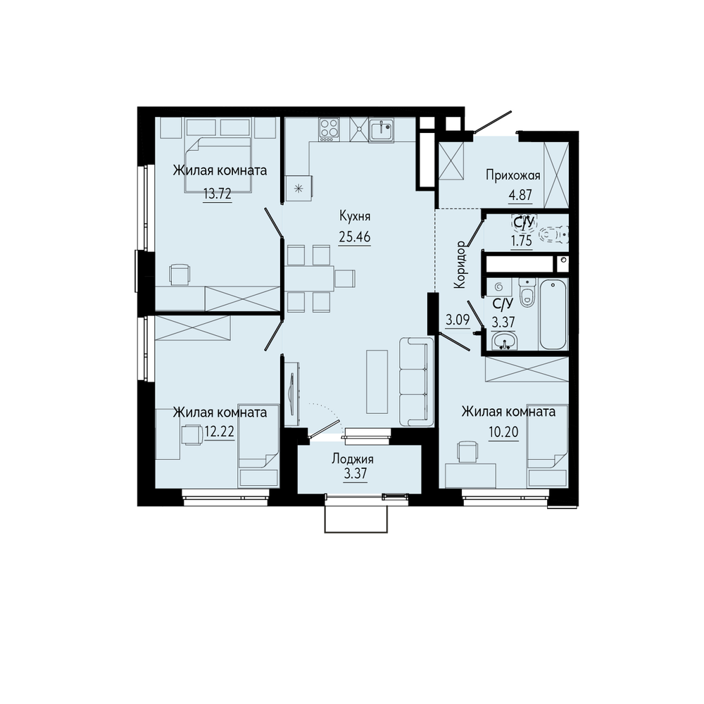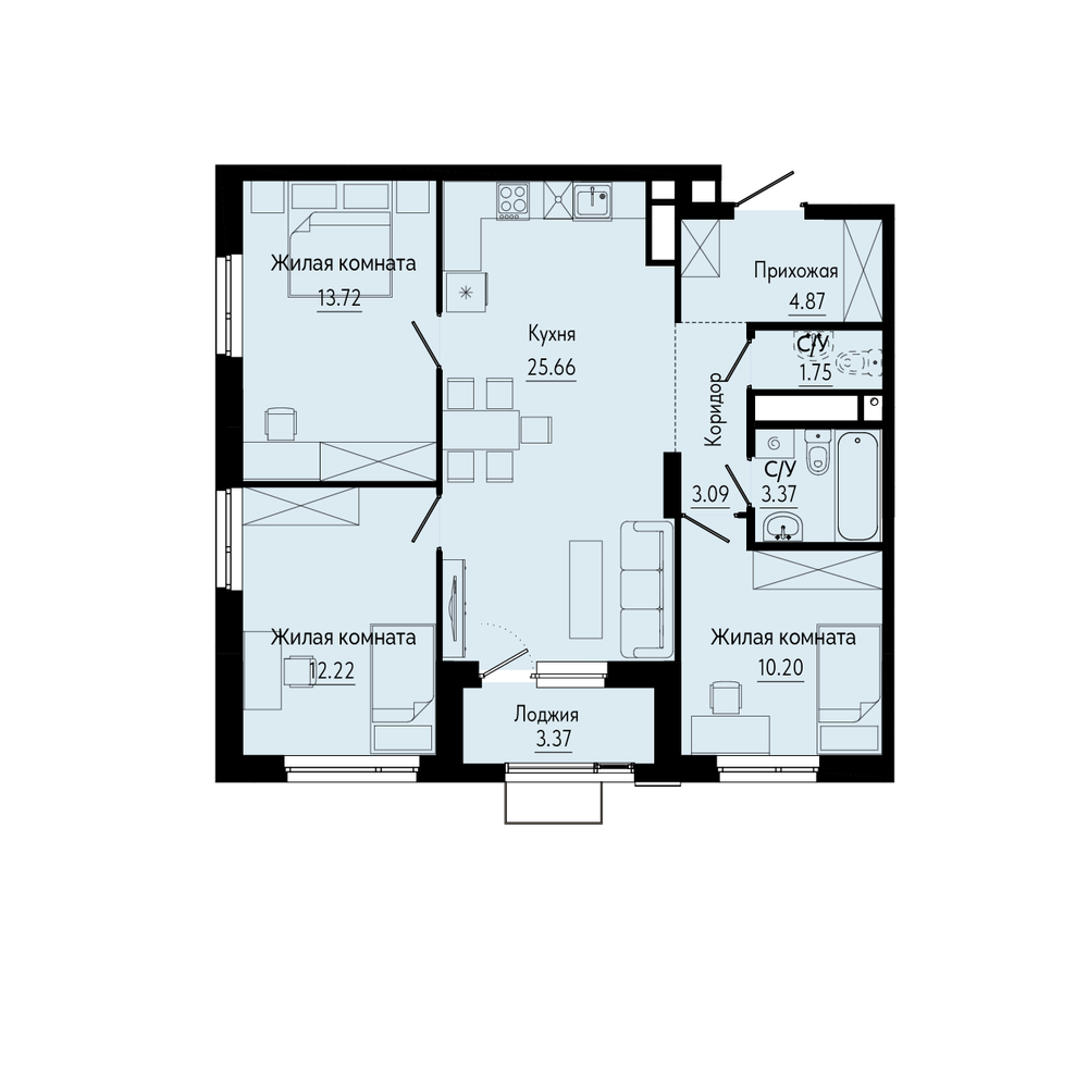 Готовим планировку - № 342ДоминантаСекция Доминанта Секция 3, Этаж 17