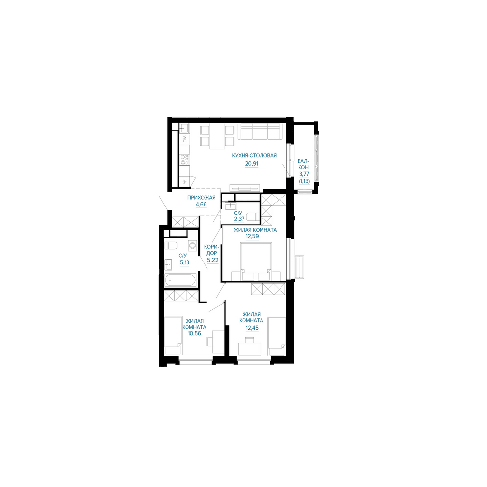 - № 203Форум Парк1, Секция 5203, Этаж 17
